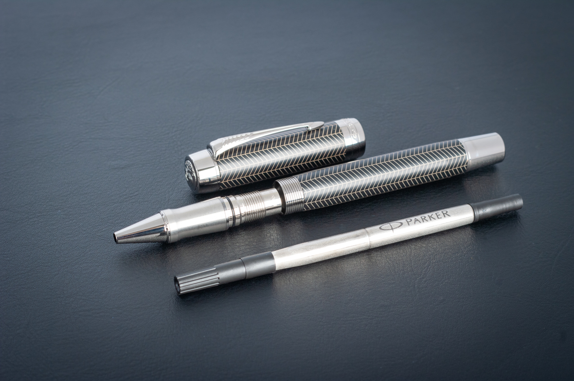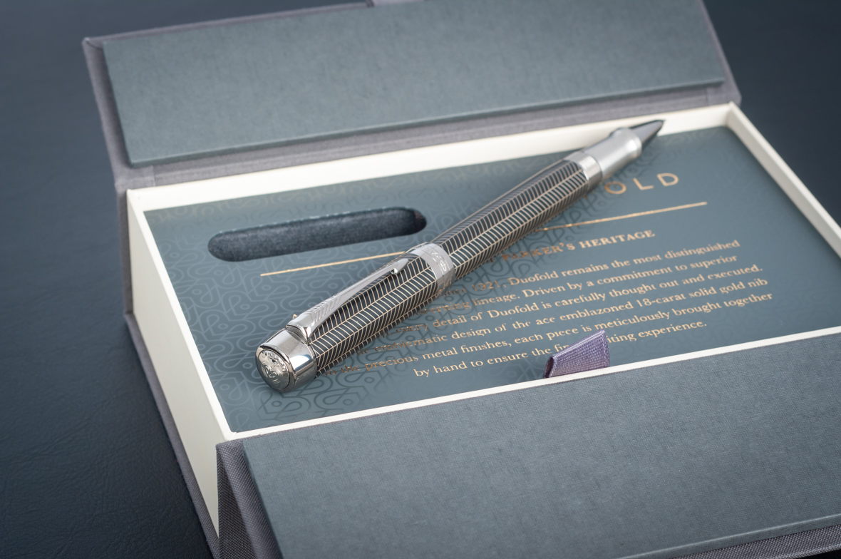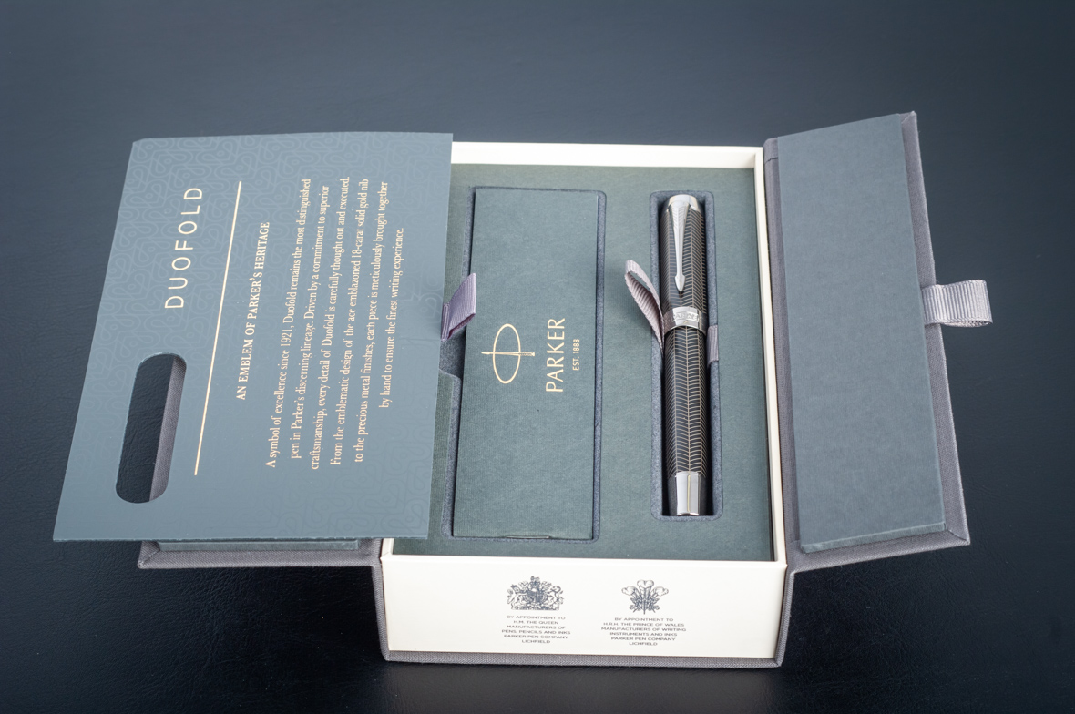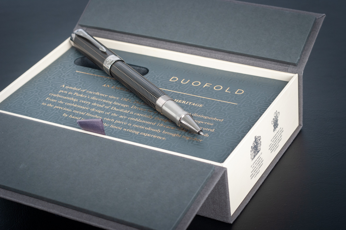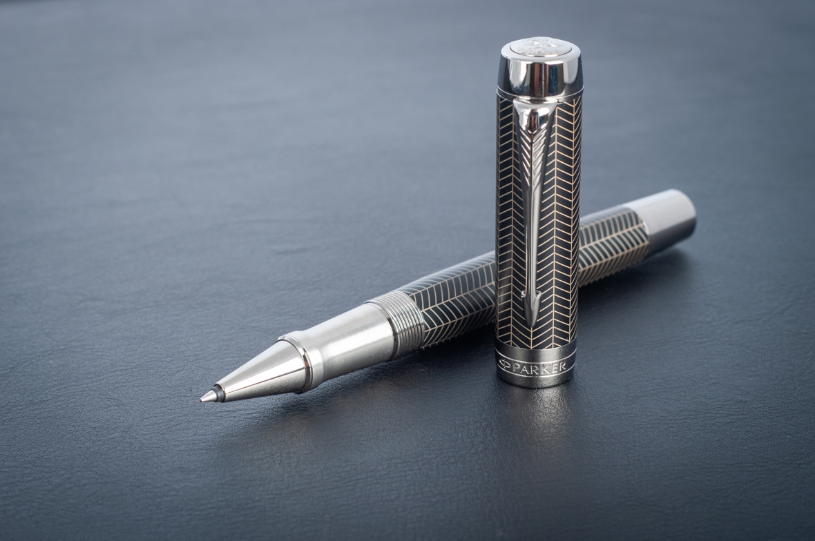 Ручка роллер Parker Duofold Prestige Centennial Black Chevron CT от официального дилера Parker в Ессентуках. Вы можете дополнительно заказать гравировку, которая подчеркнет Вашу оригинальность и придаст памятность статусному подарку. Все ручки Паркер поставляются в фирменном футляре.